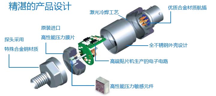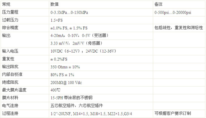 PT141刚性杆智能型压力传感器,特殊结构设计,采用进口合金弹性膜片。使用寿命是传统膜片的10倍以上。压力传动杆将膜片应力传送至悬臂梁,使悬臂梁产生变形。从而引起粘贴在悬臂梁的应变计精确、稳定测出压力值。经过高可靠性的放大电路及精密温度补偿。精堪的封装技术及完善得装配工艺确保了该产品的质量和及高的性价比。应用于常规条件下的高温熔体、流体、气体的压力测量与控制领域。广泛应用于石油化工、化纤纺机、无纺布、非织造布、塑料、橡胶、挤出设备等行业。具有准确度高、稳定性好、输出信号大、动态性佳、通用性强等优点。与我公司的智能数显仪表配套可实现对系统压力显示报警或控制。也称之为:锅炉压力传感器,蒸汽压力传感器,熔体压力传感器/变送器,塑料机压力传感器, 塑料机压力测控传感器,塑料机压力控制仪器,经济型高温熔体压力传感器,经济型高温熔体压力传感器。