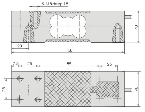 精度等级 : C2 综合误差(%F.S) : ±0.02 灵敏度(mv) : 2.0±0.1 蠕变(%F.S/30min) : ±0.02 零点输出(%F.S ) : ±1.0 输入阻抗(Ω) : 405±10 输出阻抗(Ω) : 350±3 绝缘电阻(MΩ) : ≥5000(100VDC) | 灵敏度温度影响(%F.S/10℃): ±0.02 零点温度影响(%F.S/10℃) : ±0.03 温度补偿范围(℃ ) : -10~+40 使用温度影响(℃ ) : -20~+60 激励电压(V) : 9~12(DC) 安全过载范围 (%F.S) : 120 极限过载范围 (%F.S) : 150 防护等级 : IP65 |