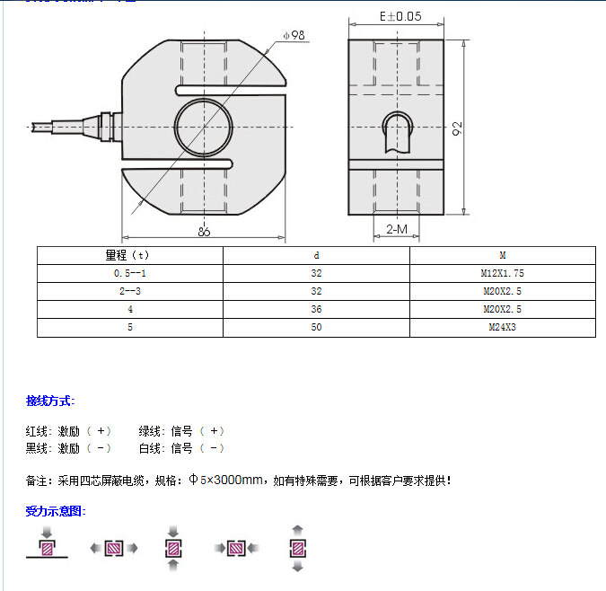 、1t、2t、3t、4t、5t功能特点:传感器弹性体采用合金钢或者不锈钢材质;胶密封处理
